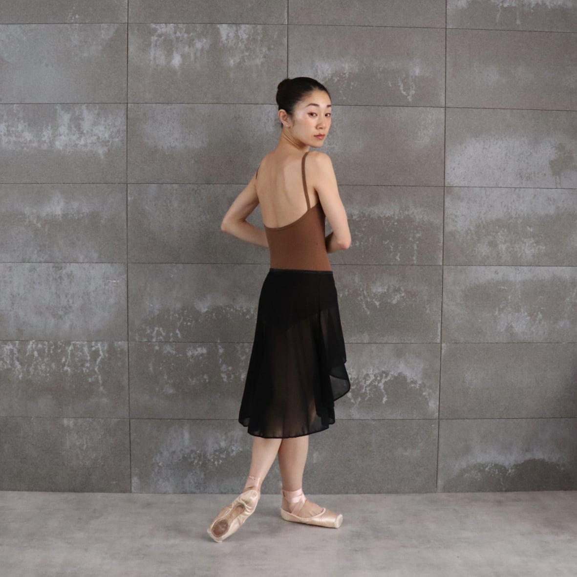 フロントは膝上丈で、前後との強弱をつけています。